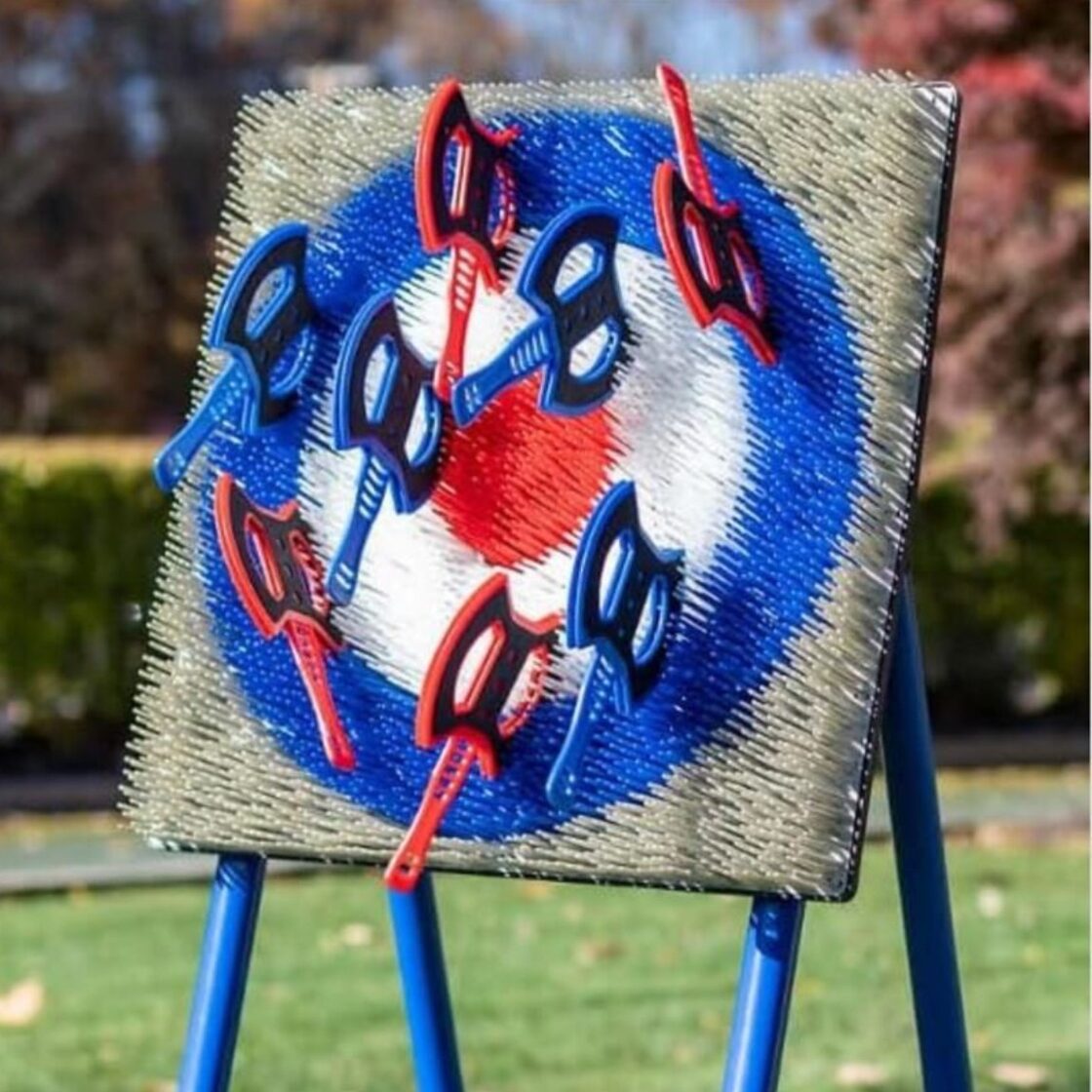 Var lietot gan ārā, gan iekštelpās. Nomas cenā iekļauts - Statīvs, mērķis, 8 metamie cirvji. Augstums 1,50m. Mērķa lielums 60x60cm.NOMAS CENA: