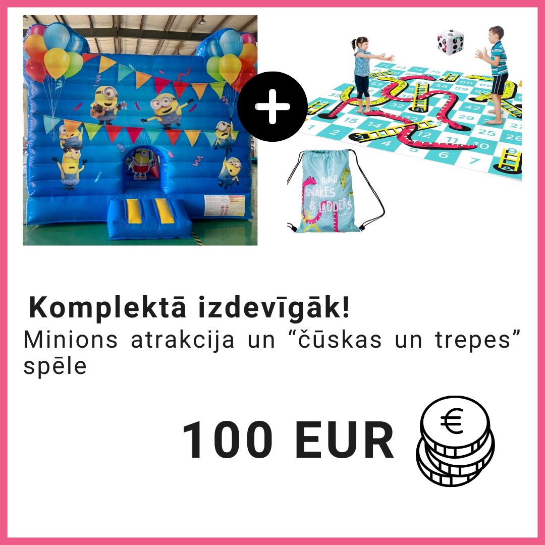 Aizraujoša atrakcija ar jau zināmajiem MINIONS varoņiem. Atrakcijā sastapsi 4 Minionus (šķēršļus)- sasveicinies ar viņiem visiem, un dodies nošļūkt pa slidkalniņu. Neaizmirsti iemest arī grozā bumbu (bumba iekļauta komplektā), un vienkārši lēkāt un jautroties kopā ar draugiem.